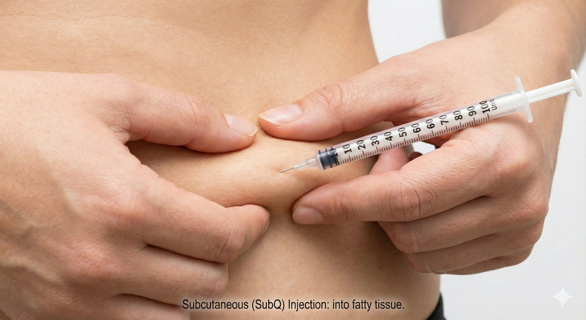 Less commonly, a provider may direct intramuscular (IM) injections (into muscle). IM requires different needle selection and technique. If your prescription says IM and you haven’t been trained hands-on, stop and ask your provider for guidance.